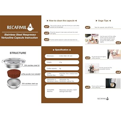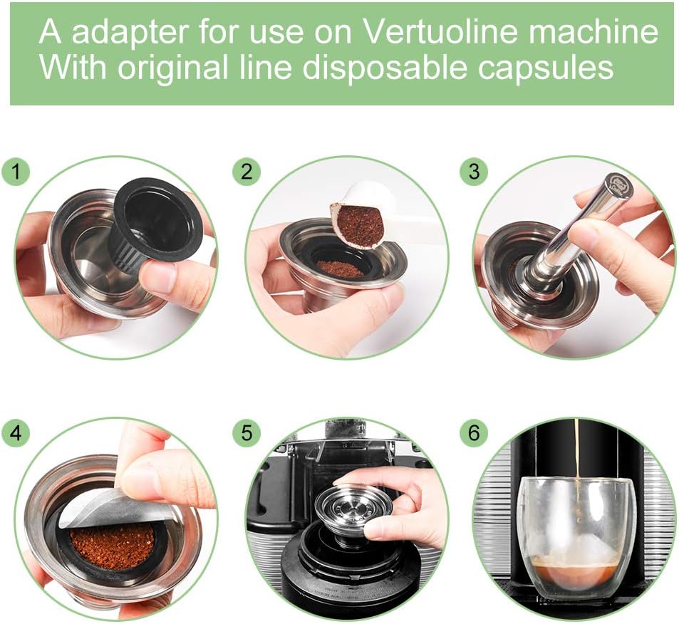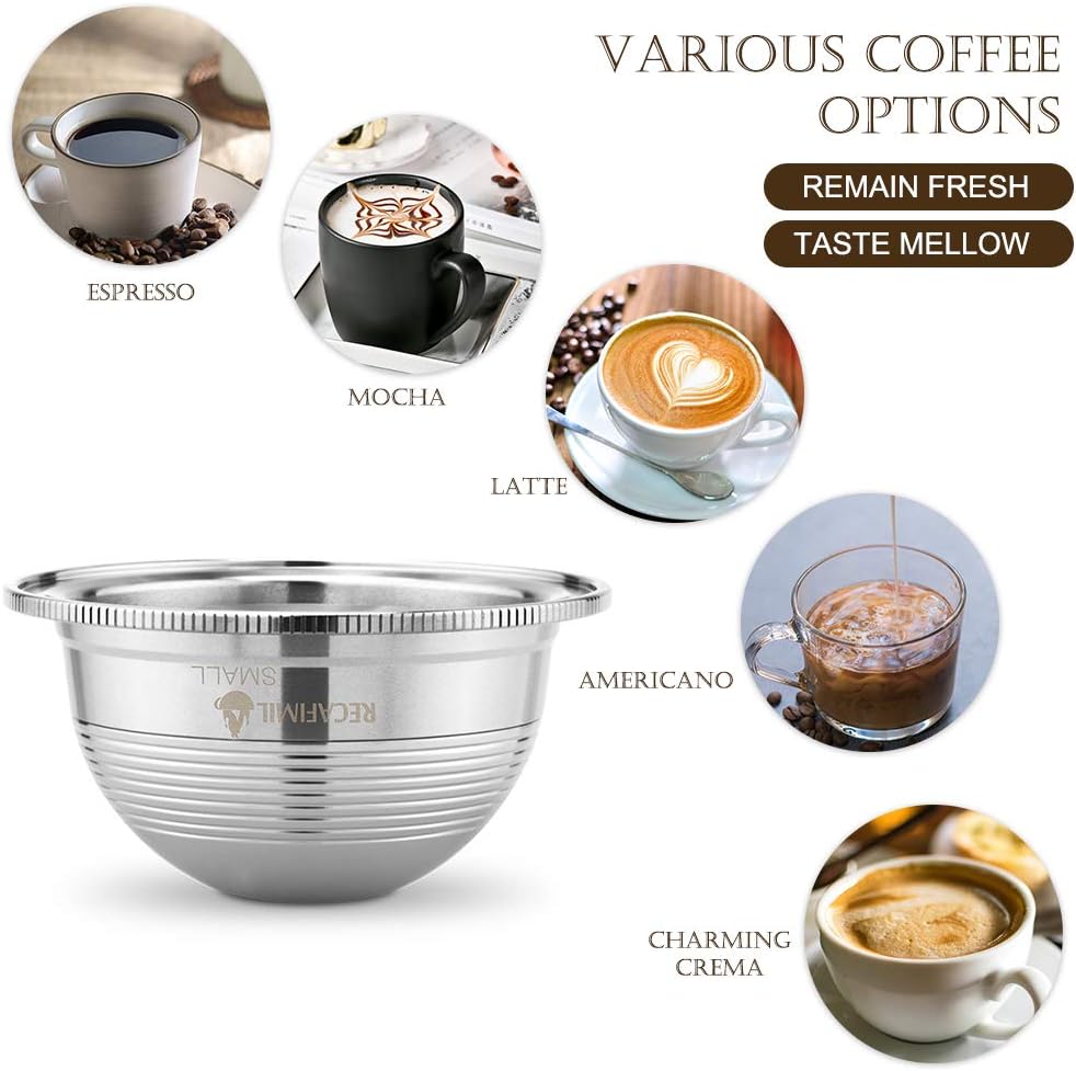 Stainless steel coffee capsule, refillable reusable coffee pods holder filter, compatible with espresso nespresso vertuo capsule pod vertuoline gca1 and delonghi env135 (70ml) 4.8 out of 5 stars.